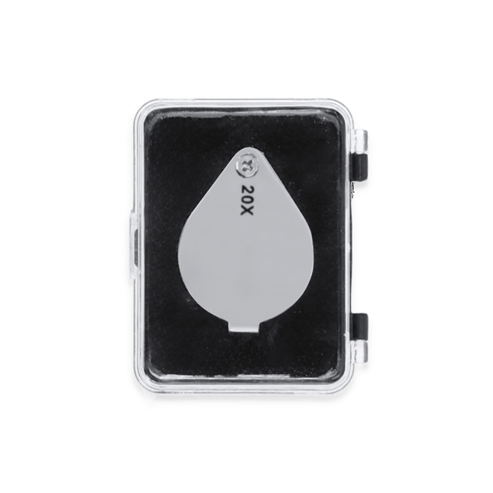 20x inklapbare loep gemaakt van duurzaam metaal. Grote vergroting voor een zeer close-up van de kleinste details zonder vervorming. Ideaal voor het inspecteren van kleine objecten, tekst, enz. Het heeft ook een accessoire om op te hangen en wordt geleverd in een koffer met gewatteerde binnenkant voor extra bescherming. Gepresenteerd in een zwarte kartonnen doos.