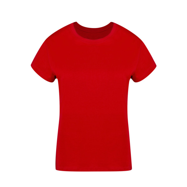 Dames-T-shirt. Gemaakt van glad breiwerk met 100% katoen en in Single Jersey-stijl van 160g/m². Zacht aanvoelend en modern gesneden, met zijnaden. Smalle ronde hals in 2x2 ribstof. Dubbele stiksels aan zoom en mouwen voor extra duurzaamheid en bestand tegen intensief gebruik. Gemakkelijk verwijderbaar label. Verkrijgbaar in een breed scala aan modieuze kleuren en in de maten S, M, L, XL en XXL.