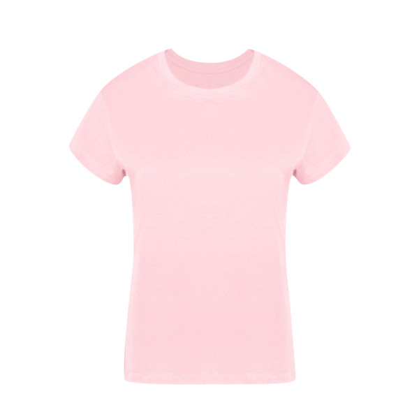 Dames-T-shirt. Gemaakt van glad breiwerk met 100% katoen en in Single Jersey-stijl van 160g/m². Zacht aanvoelend en modern gesneden, met zijnaden. Smalle ronde hals in 2x2 ribstof. Dubbele stiksels aan zoom en mouwen voor extra duurzaamheid en bestand tegen intensief gebruik. Gemakkelijk verwijderbaar label. Verkrijgbaar in een breed scala aan modieuze kleuren en in de maten S, M, L, XL en XXL.