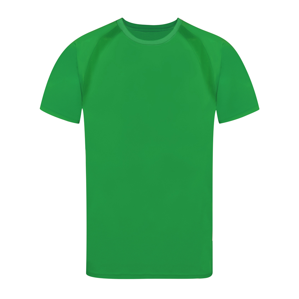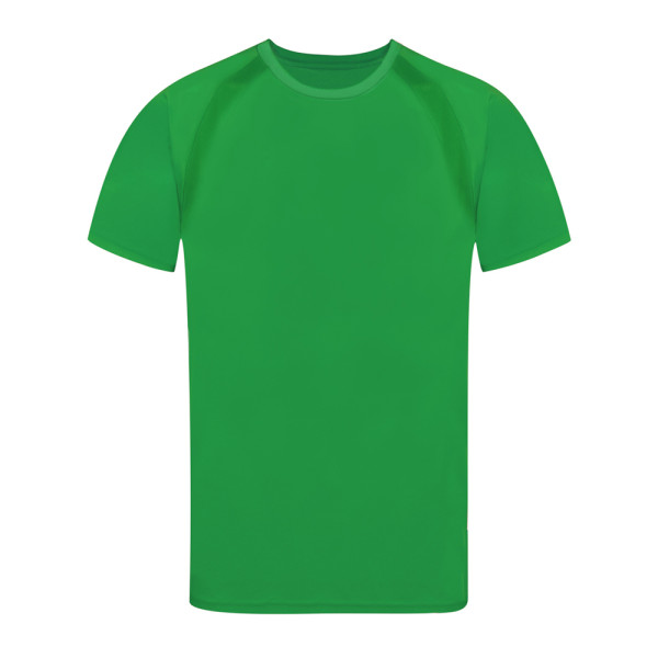 Technisch T-shirt voor volwassenen van 100% ademend polyester materiaal 135g/m2. Met raglanmouwen, ronde hals en banden aan de voorkant van ademende, micro-geperforeerde stof. Verkrijgbaar in de maten S, M, L, XL, XXL.