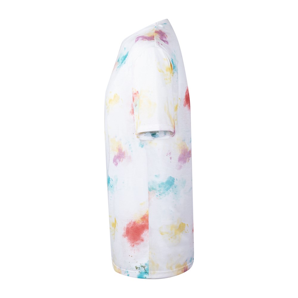 T-shirt voor volwassenen van 100% polyester, ademend materiaal van 160 g/m2, met katoengevoel. Ronde hals en opvallend printontwerp geïnspireerd op een kleurenpalet. Verkrijgbaar in de maten S, M, L, XL, XXL.