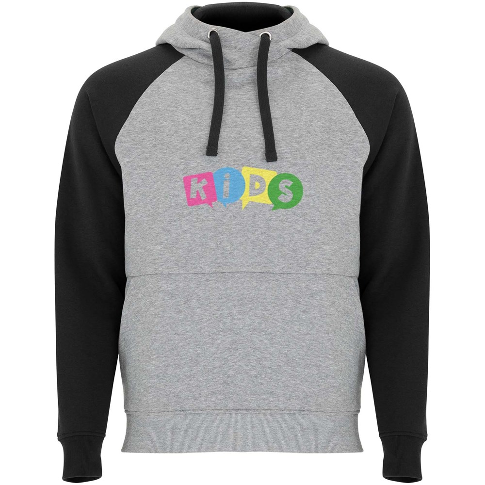 Tweekleurige unisex hoodie. Capuchon met gekruiste hals en metalen oogjes. Contrasterende binnenkant van de capuchon, trekkoord en raglanmouwen. Kangoeroezak. Manchetten en zoom van 1x1 ribgebreid elastaan. Verwijderbaar label.