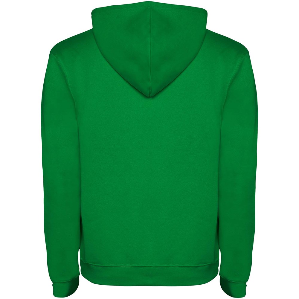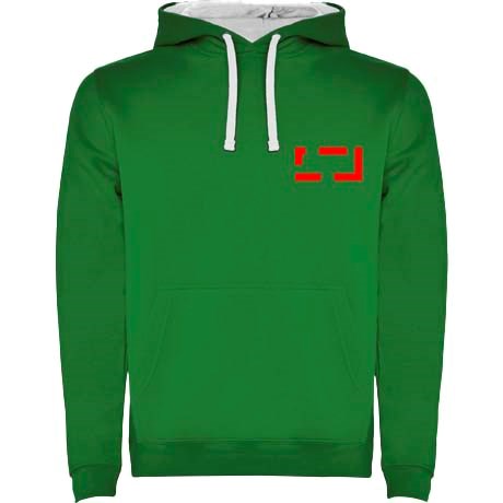 Tweekleurige hoodie met dubbele stof. Versterkte bedekte naden in de kraag en kangoeroezak. 1x1...meer