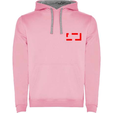 Tweekleurige hoodie met dubbele stof. Versterkte bedekte naden in de kraag en kangoeroezak. 1x1...meer