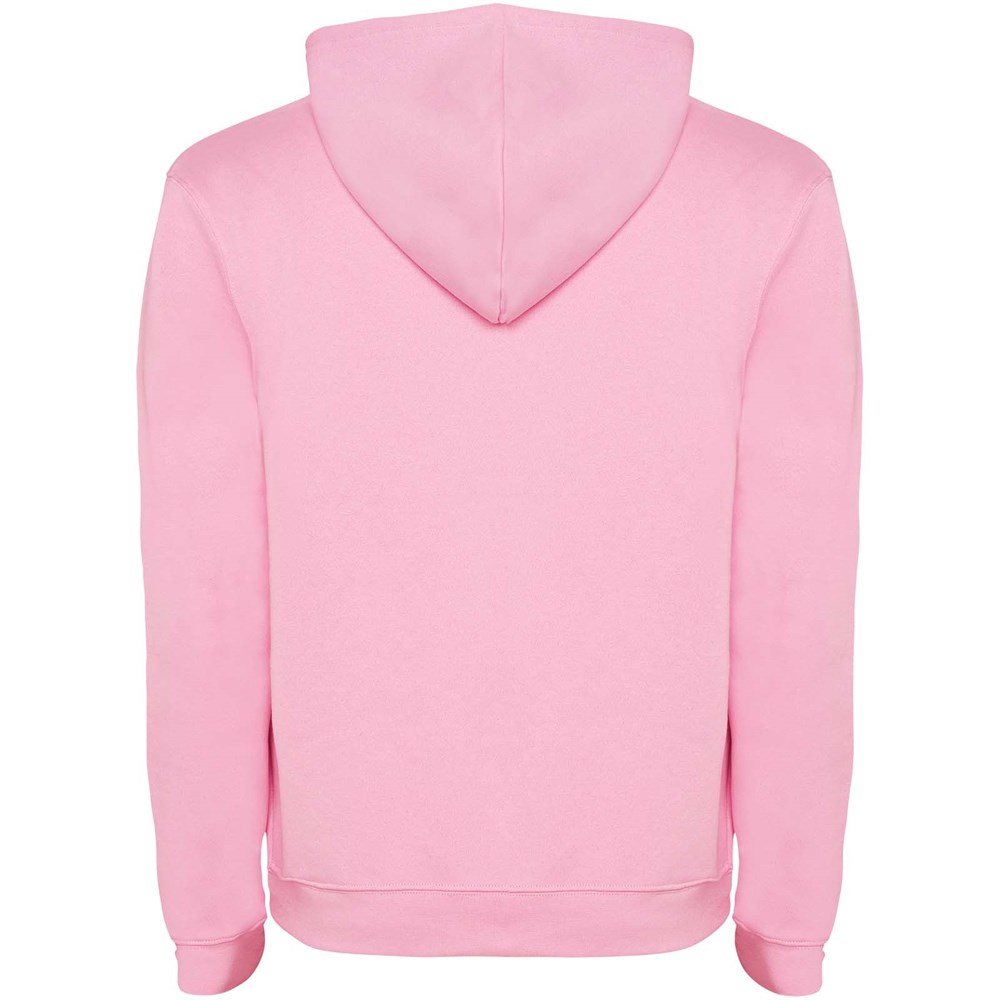 Tweekleurige hoodie met dubbele stof. Versterkte bedekte naden in de kraag en kangoeroezak. 1x1 elastaan rib in manchetten en tailleband. Verwijderbaar etiket. Het model is 120 cm en draagt maat 5/6.