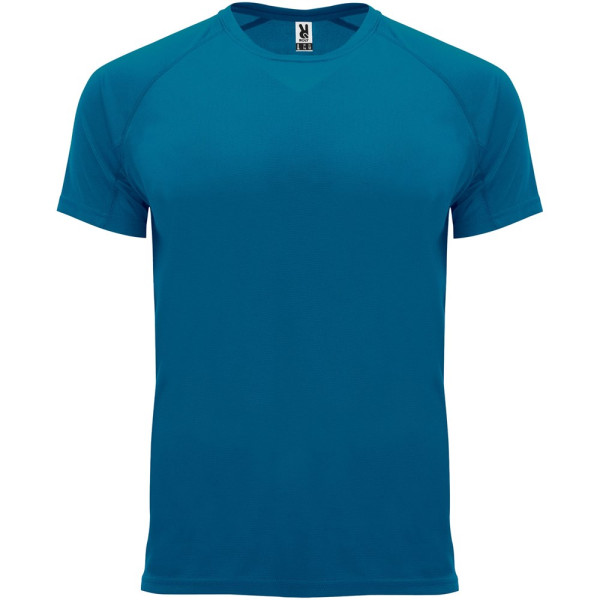 Technisch raglanshirt met korte mouwen. Ronde hals met bijpassende bedekte naden. Onderste mouwpanelen. Bijpassende overlock in het armsgat en mouwpaneel. CONTROL-DRY-stof. Verwijderbaar etiket. Technische stof. Het model is 180 cm en draagt maat M.
