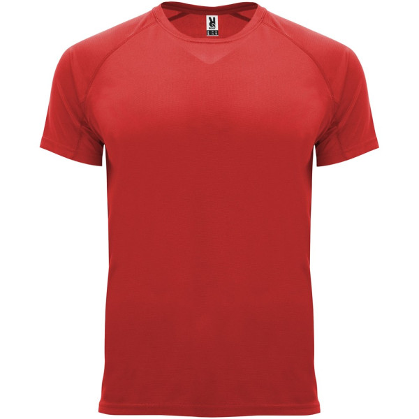 Technisch raglanshirt met korte mouwen. Ronde hals met bijpassende bedekte naden. Onderste mouwpanelen. Bijpassende overlock in het armsgat en mouwpaneel. CONTROL-DRY-stof. Verwijderbaar etiket. Technische stof. Het model is 180 cm en draagt maat M.