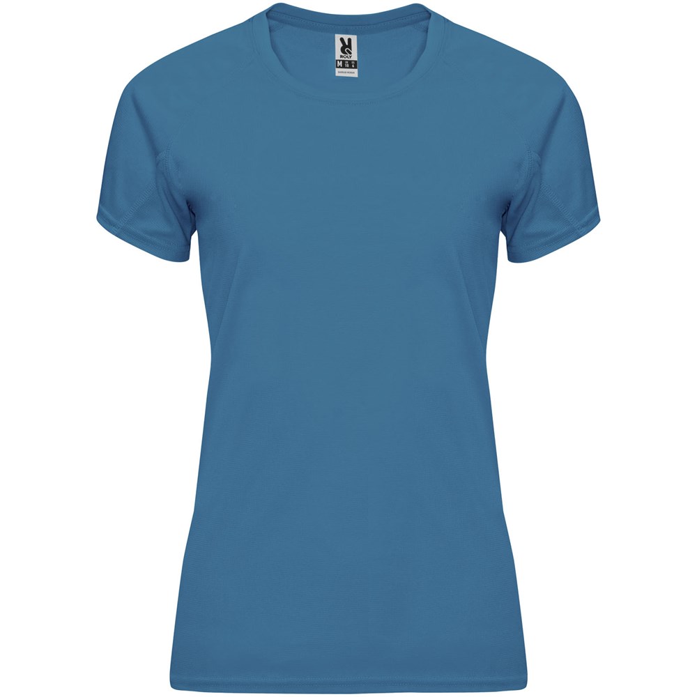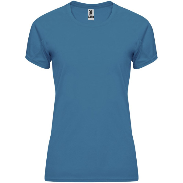 Technisch raglanshirt met korte mouwen voor dames. Ronde hals met bijpassende bedekte naden. Mouwpanelen. Bijpassende overlock in het armsgat en mouwpaneel. CONTROL-DRY-stof. Verwijderbaar etiket. Technische stof. Uv-beschermingsfactor. Het model is 173 cm en draagt maat S.