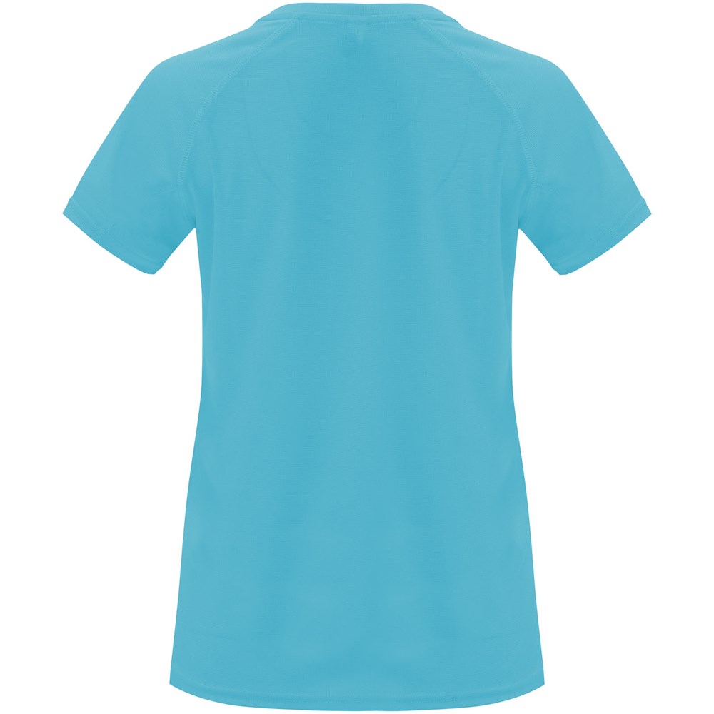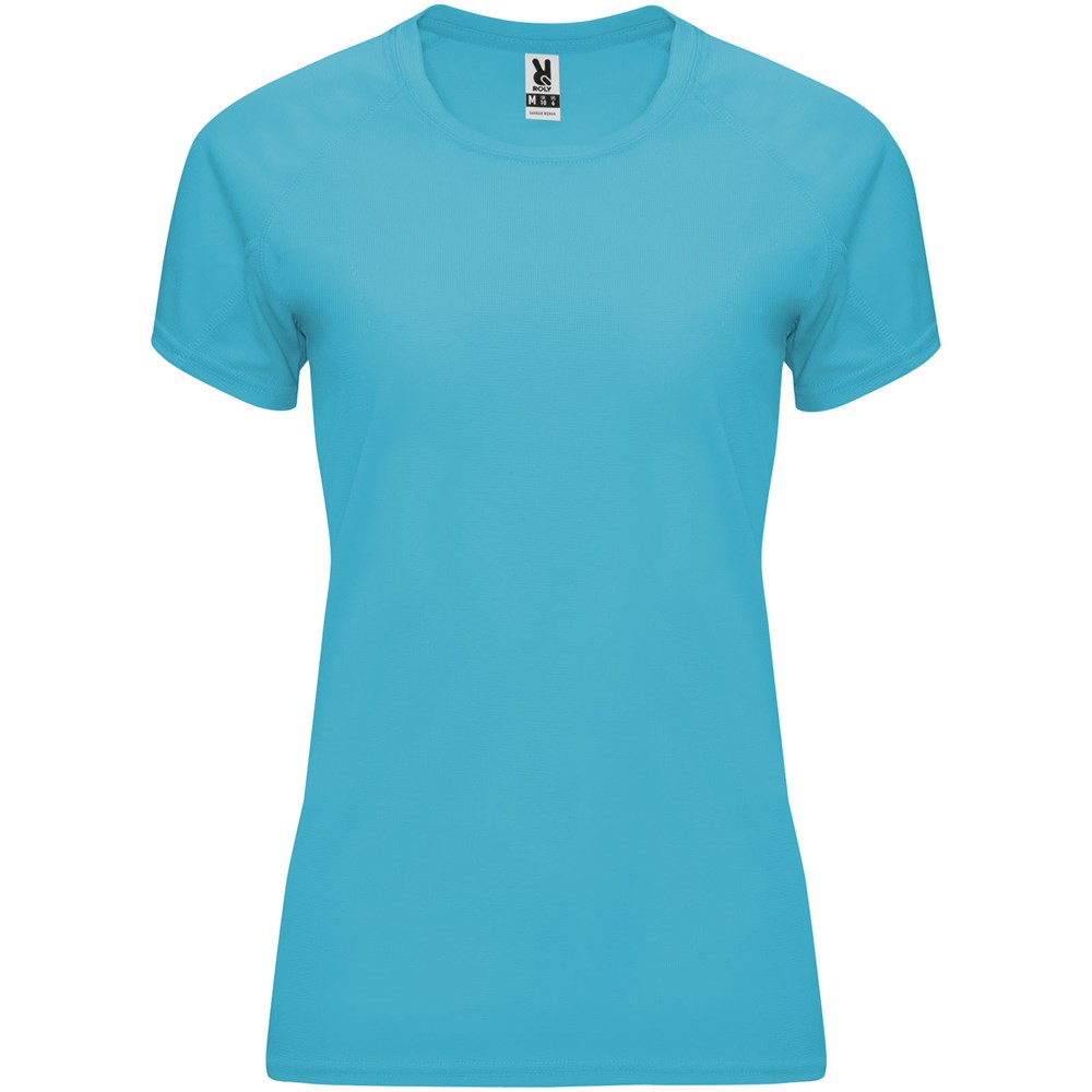 Technisch raglanshirt met korte mouwen voor dames. Ronde hals met bijpassende bedekte naden. Mouwpanelen. Bijpassende overlock in het armsgat en mouwpaneel. CONTROL-DRY-stof. Verwijderbaar etiket. Technische stof. Uv-beschermingsfactor. Het model is 173 cm en draagt maat S.