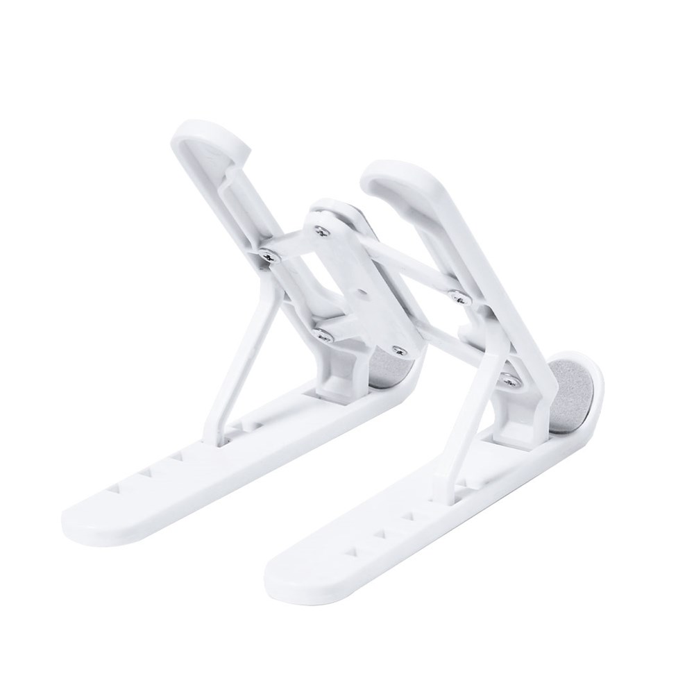 Vouwbare tabletstandaard. Gemaakt van robuust ABS met antislipbescherming voor een stevige bevestiging aan het apparaat in de kleur grijs. In hoogte verstelbaar in 5 posities en opvouwbaar in compact formaat.