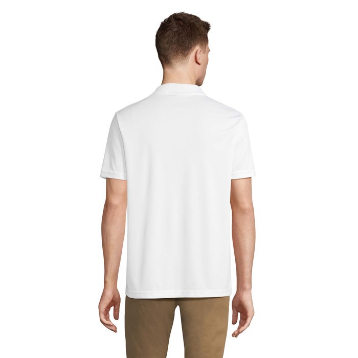 SOL'S PITCHER UNISEX POLO, sportpolo, 100% gerecycled polyester, korte mouwen, genaaid model, verstevigde sluiting met 3 ton-sur-ton knopen, nekband, geribde kraag, geschikt voor sublimatie. Raadpleeg de maattabel in de productdocumentatie voor de juiste maat.