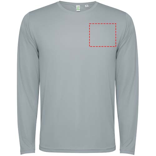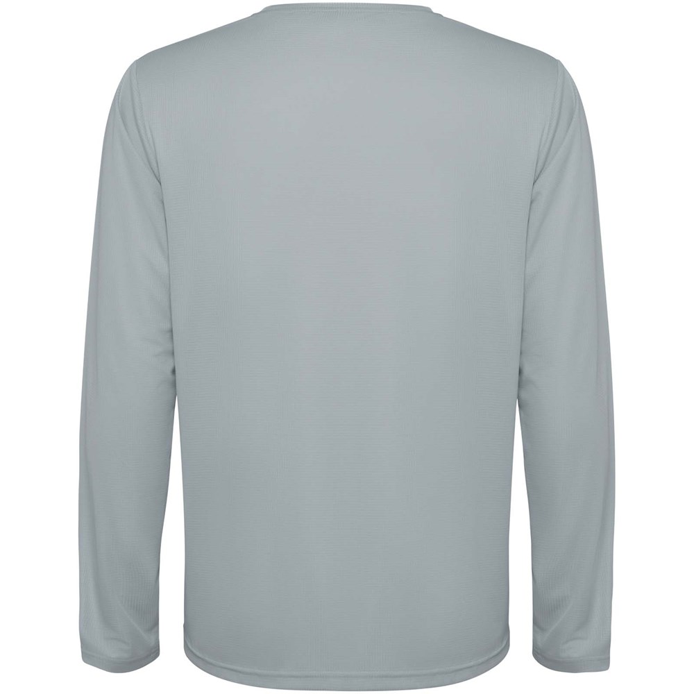 Unisex technisch T-shirt met lange mouwen voor kinderen. Kraag met bijpassende naden. Achterzoom iets langer dan de voorkant. Zijnaden iets naar voren geplaatst.
