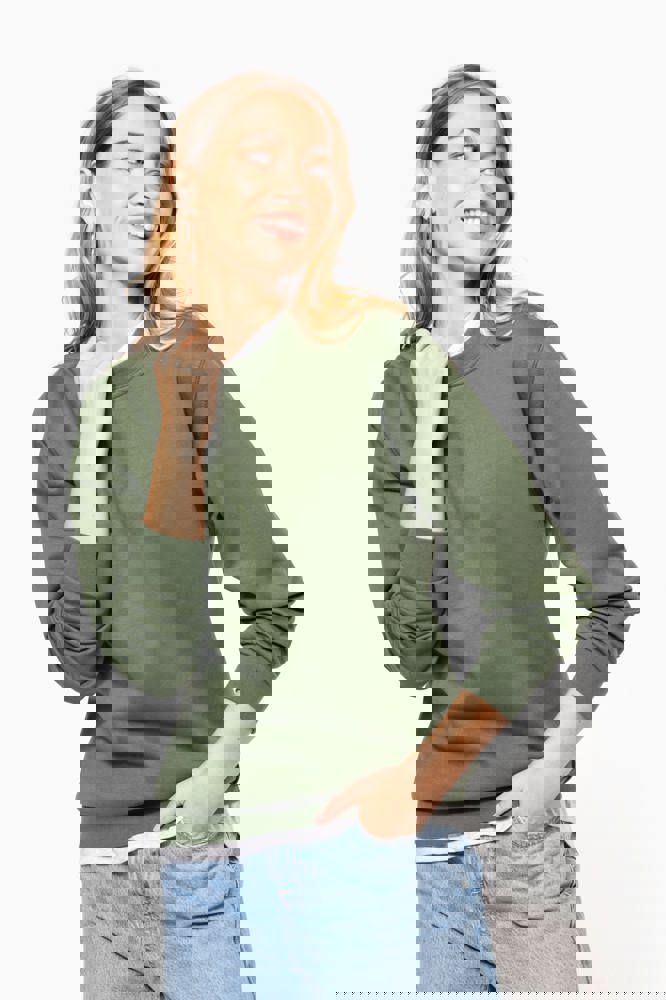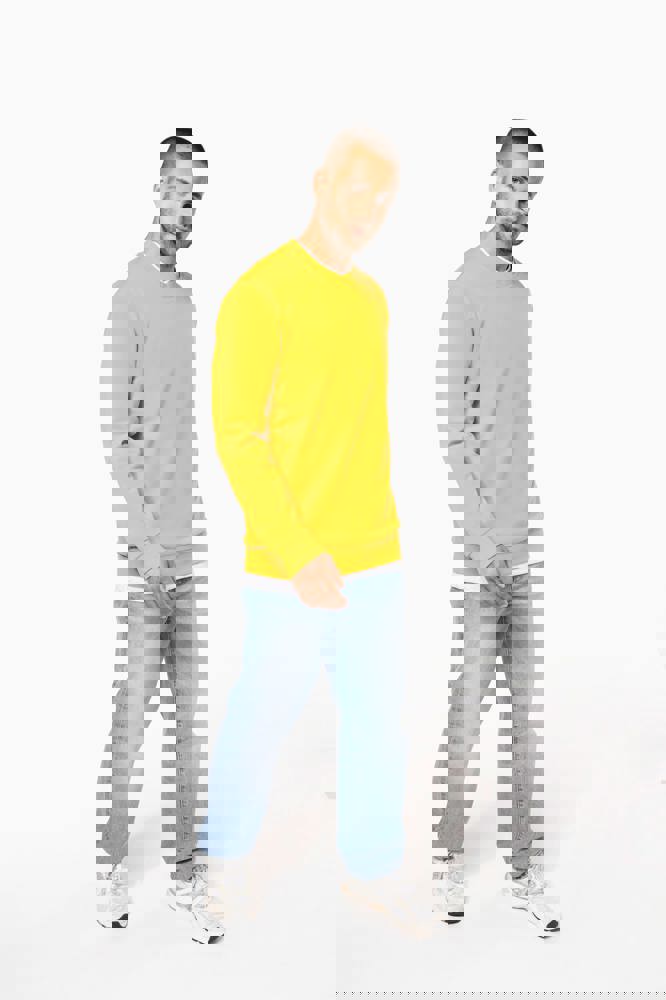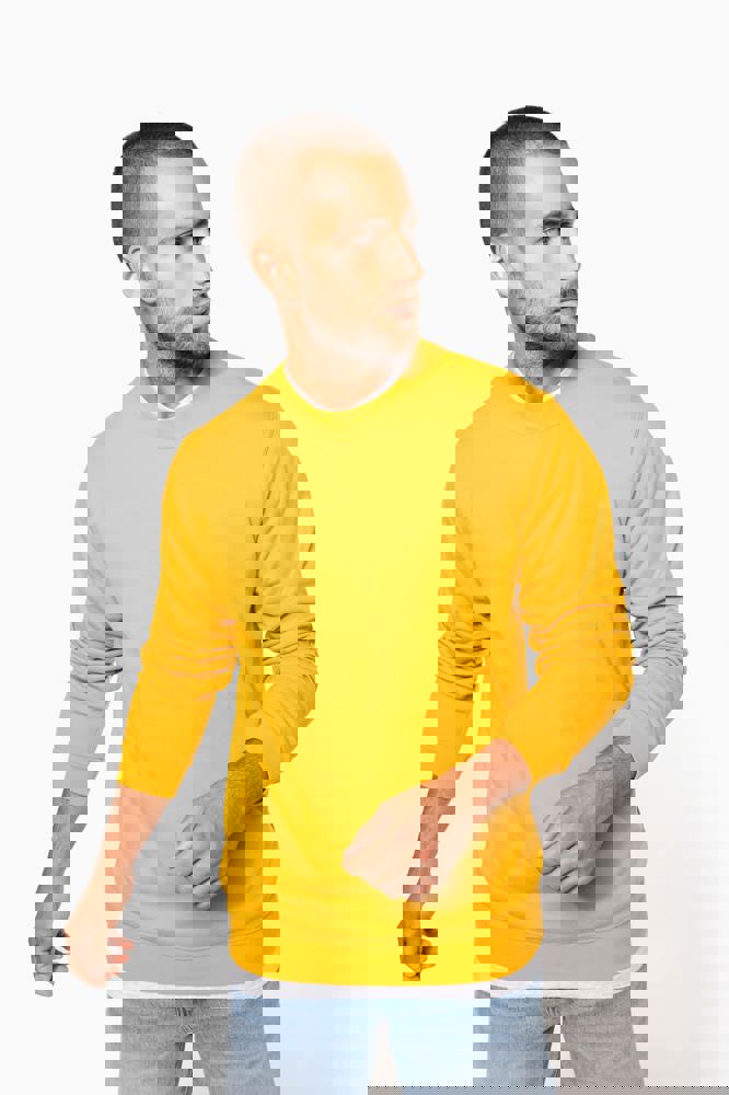 80% katoen/ 20% polyester. Gekamd katoen. Geborsteld fleece aan de binnenkant. Ingezette mouwen. Ribboord aan halsopening, mouwuiteinden en aan de onderkant.
