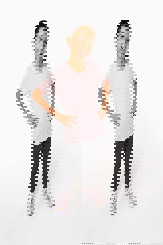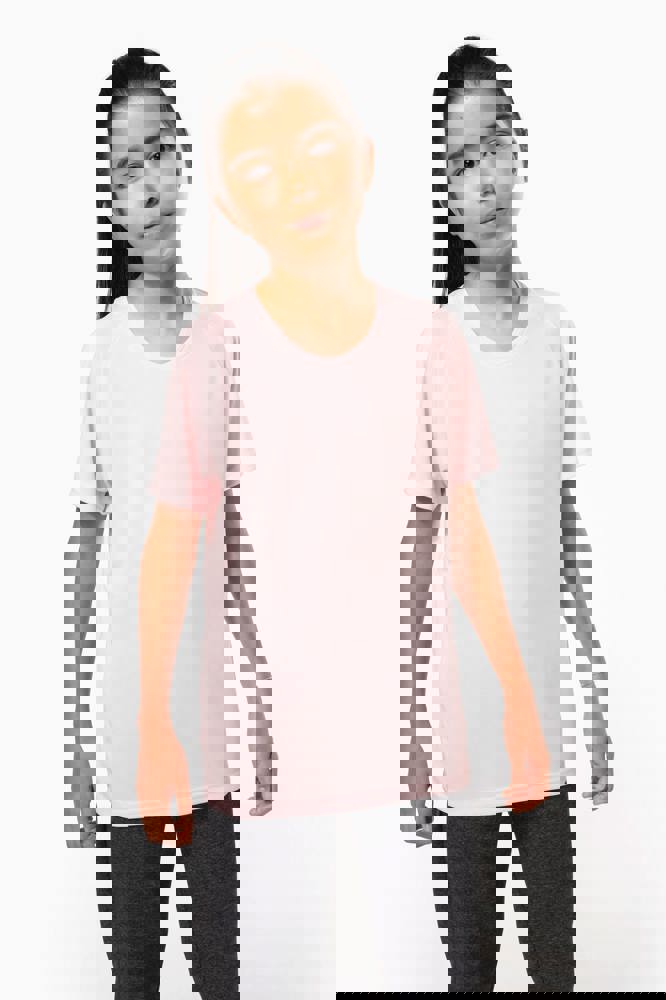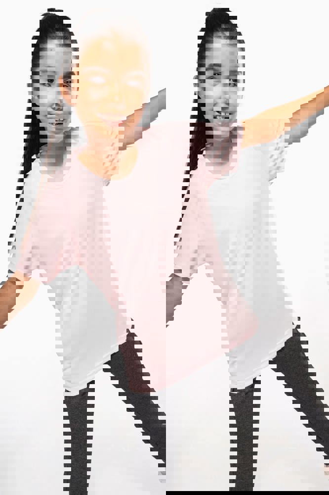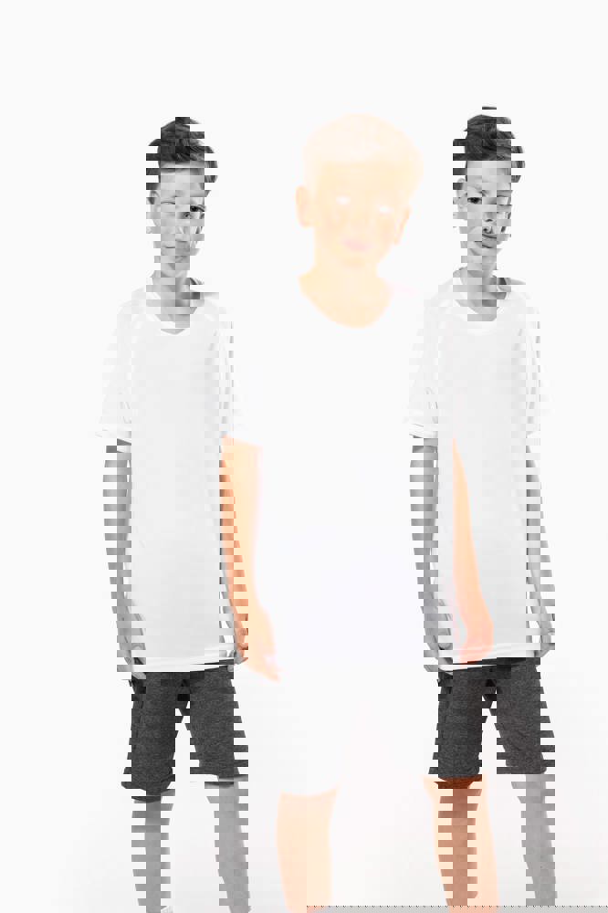 100% polyester. Sneldrogende lichte stof. Ronde hals. Nektape. Raglan mouwen met overstiksels....meer