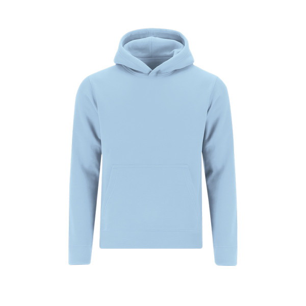 Unisex kinderhoodie met gevoerde capuchon in bijpassende dubbele stof. Gemaakt van katoen en polyester in zacht geruwd fleece 280 g/m. Voorzien van kangoeroezak, verstevigd nektape en manchetten en tailleband in 1x1 ribtricot met elastaan voor betere pasvorm en comfort.
