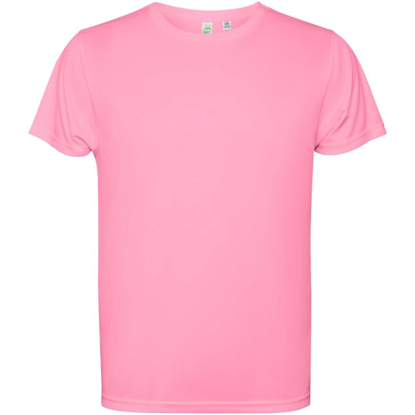 Technisch T-shirt met korte mouwen voor heren. Kraag met bijpassende naden. De zoom aan de achterkant is iets langer dan aan de voorkant. Zijnaden naar voren verschoven.