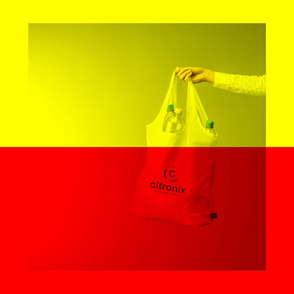 Royale, opvouwbare winkeltas met dubbele handgreep van 190T RPET polyester. Snel op te vouwen in de pouch aan de binnenzijde van de tas en gemakkelijk mee te nemen. GRS-gecertificeerd. Totaal gerecycled materiaal: 95%. Afm. opgevouwen 8 x 8 x 6 cm. Inhoud ca. 10 liter.
