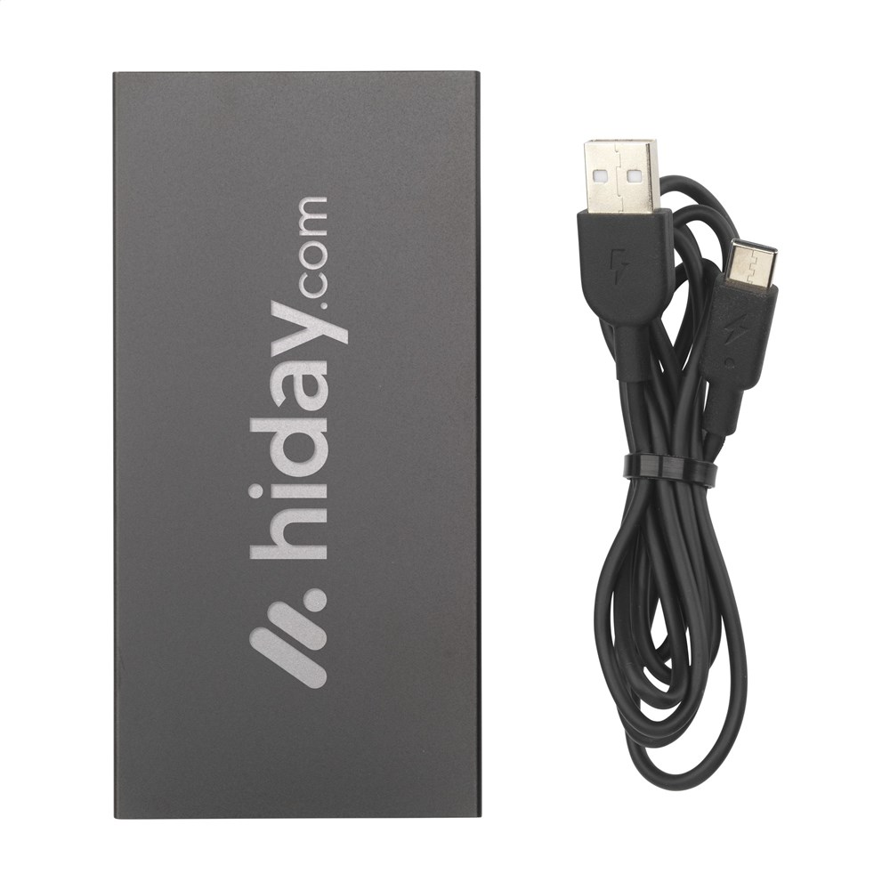 Krachtige powerbank met ingebouwde lithium-polymeerbatterij (5000 mAh). De behuizing is gemaakt van 100% GRS-gecertificeerd gerecycled aluminium. Deze krachtpatser past gemakkelijk in je broekzak waardoor je hem comfortabel overal mee naar toe kunt nemen. Input 5V/2,4A (type-c) Output: 5V/2.4A dual USB. Met indicatielampjes. Inclusief USB-C oplaadkabel en gebruiksaanwijzing. Totaal gerecycled materiaal: 36%. Door het gebruik van gerecycled aluminium worden er minder nieuwe grondstoffen gebruikt tijdens de productie van dit product. Dit betekent minder energieverbruik en minder gebruik van water. Per stuk in doosje.
