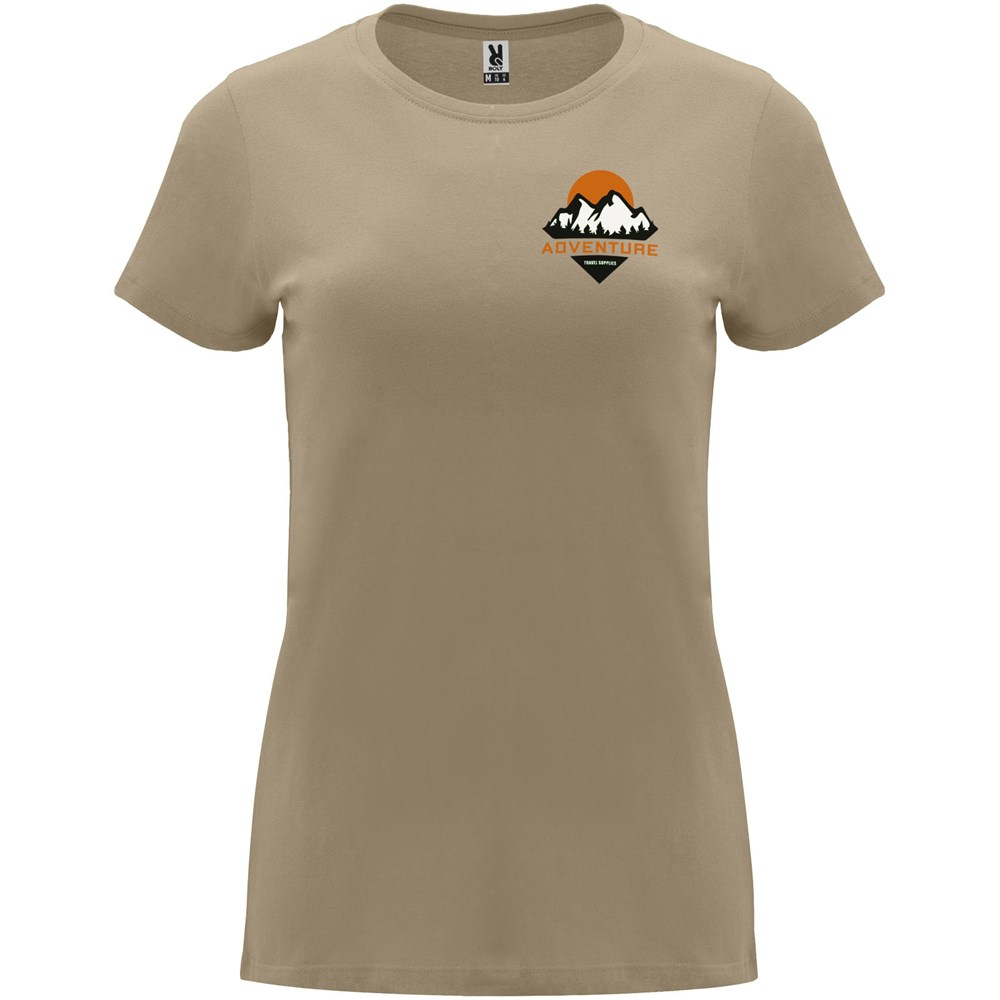 Getailleerd T-shirt met korte mouwen voor dames. 1x1 geribde ronde hals. Versterkte bedekte naden in de kraag. Verwijderbaar etiket.