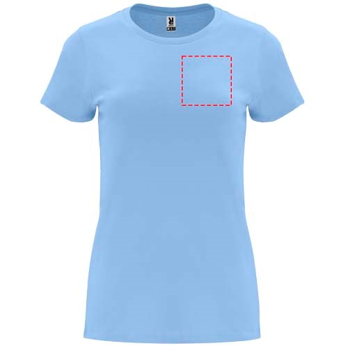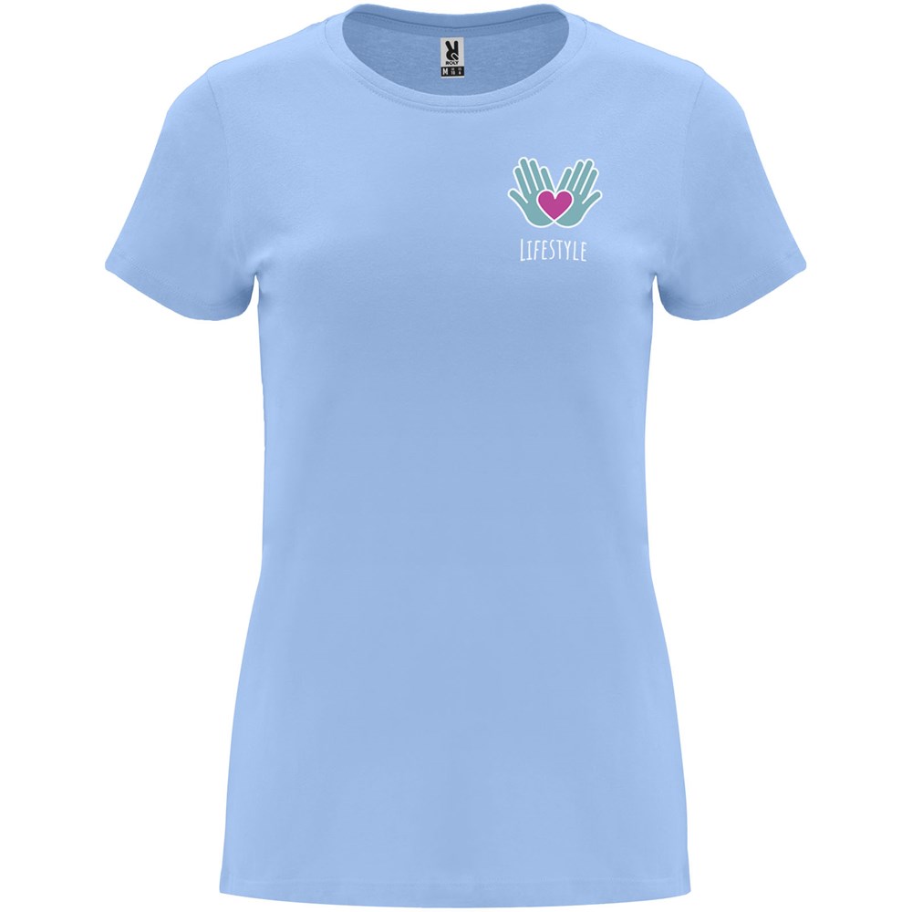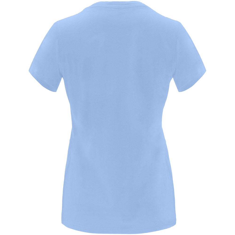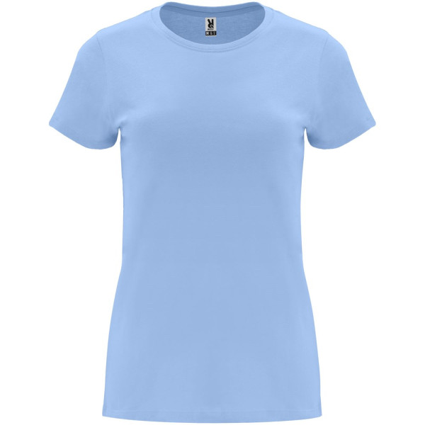 Getailleerd T-shirt met korte mouwen voor dames. 1x1 geribde ronde hals. Versterkte bedekte naden in de kraag. Verwijderbaar etiket.