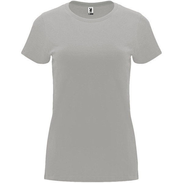 Getailleerd T-shirt met korte mouwen voor dames. 1x1 geribde ronde hals. Versterkte bedekte naden in de kraag. Verwijderbaar etiket.