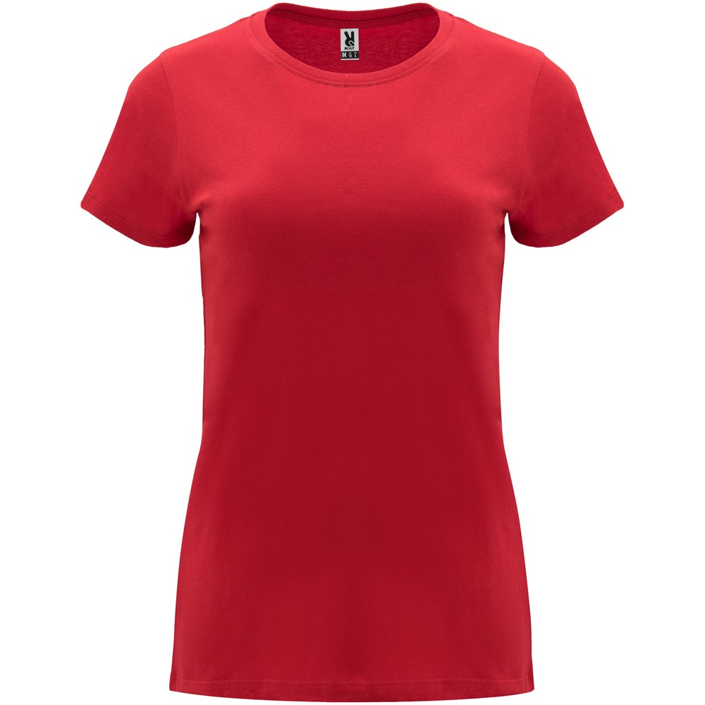 Getailleerd T-shirt met korte mouwen voor dames. 1x1 geribde ronde hals. Versterkte bedekte naden in de kraag. Verwijderbaar etiket.