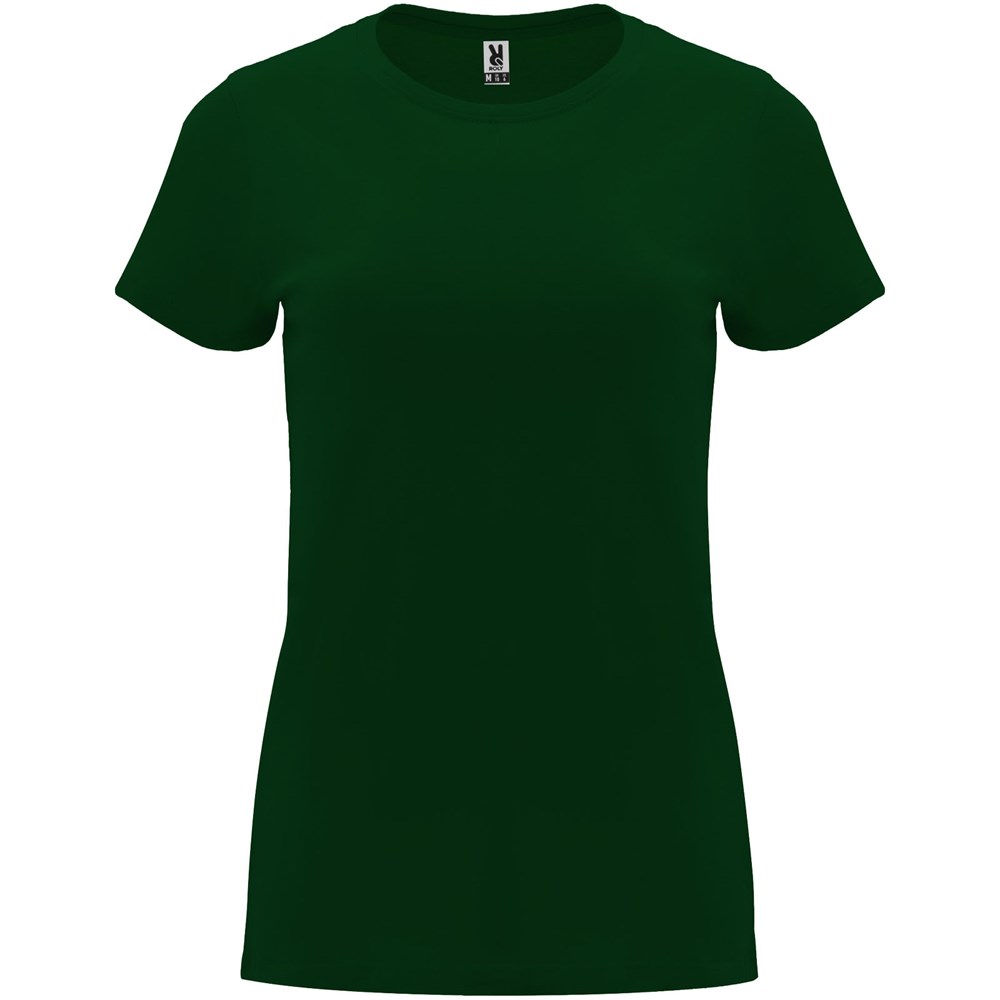 Getailleerd T-shirt met korte mouwen voor dames. 1x1 geribde ronde hals. Versterkte bedekte naden in de kraag. Verwijderbaar etiket.