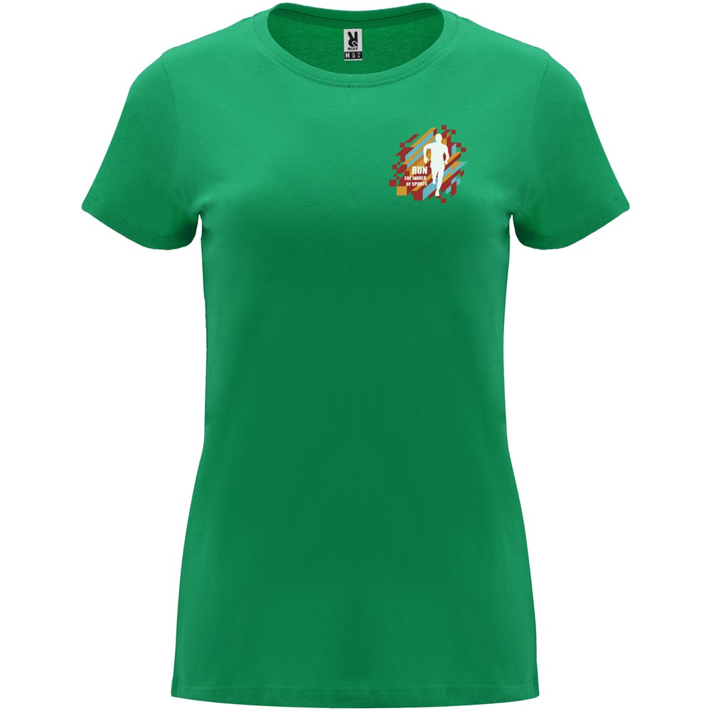 Getailleerd T-shirt met korte mouwen voor dames. 1x1 geribde ronde hals. Versterkte bedekte naden...meer