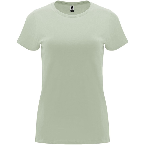 Getailleerd T-shirt met korte mouwen voor dames. 1x1 geribde ronde hals. Versterkte bedekte naden in de kraag. Verwijderbaar etiket.