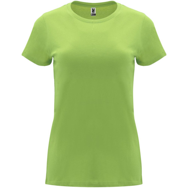 Getailleerd T-shirt met korte mouwen voor dames. 1x1 geribde ronde hals. Versterkte bedekte naden in de kraag. Verwijderbaar etiket.
