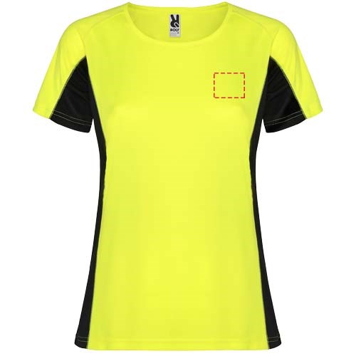Technische en ademende stof. Een combinatie van twee polyesterstoffen: Hoofdstof van birdseye-stof, zijpanelen en binnenmouw van micro-geperforeerde stof. Ronde hals met binnenin versterkte bedekte naden. Verwijderbaar label.