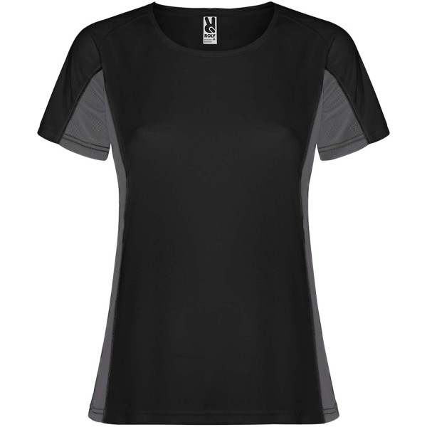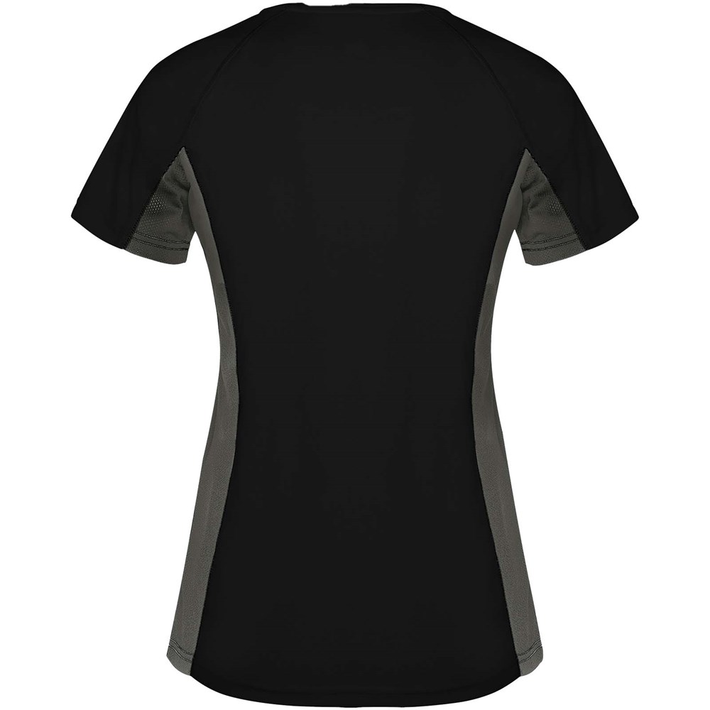 Technische en ademende stof. Een combinatie van twee polyesterstoffen: Hoofdstof van birdseye-stof, zijpanelen en binnenmouw van micro-geperforeerde stof. Ronde hals met binnenin versterkte bedekte naden. Verwijderbaar label.