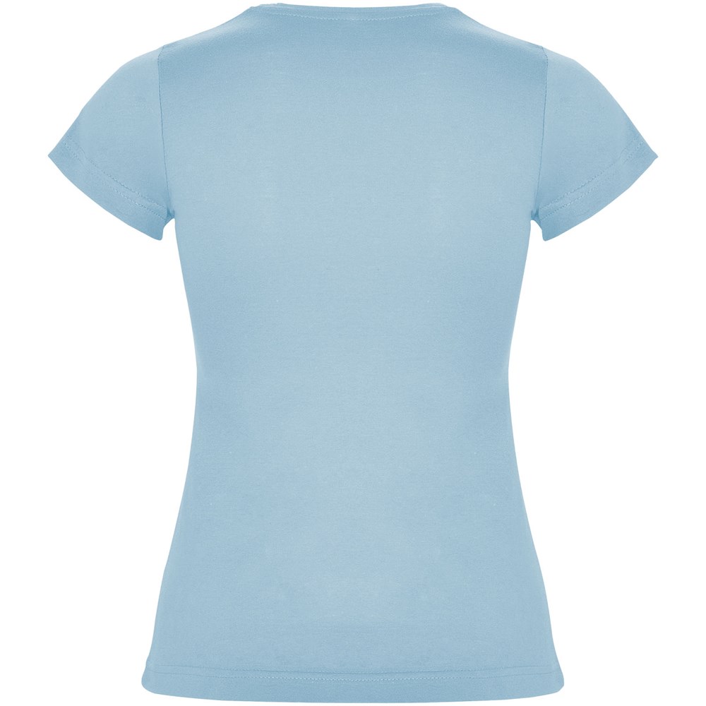 Getailleerd T-shirt met korte mouwen. 1x1 dubbellaags geribde ronde hals en bedekte naden van schouder tot schouder. Zijnaden. T-shirt verkrijgbaar in 21 kleuren. Verwijderbaar etiket. Het model is 168 cm en draagt maat S.