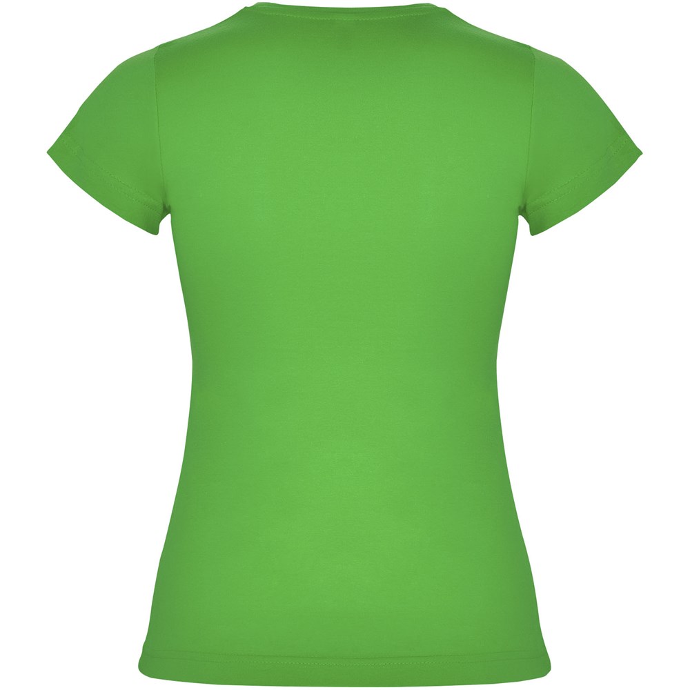 Getailleerd T-shirt met korte mouwen. 1x1 dubbellaags geribde ronde hals en bedekte naden van schouder tot schouder. Zijnaden. T-shirt verkrijgbaar in 21 kleuren. Verwijderbaar etiket. Het model is 168 cm en draagt maat S.