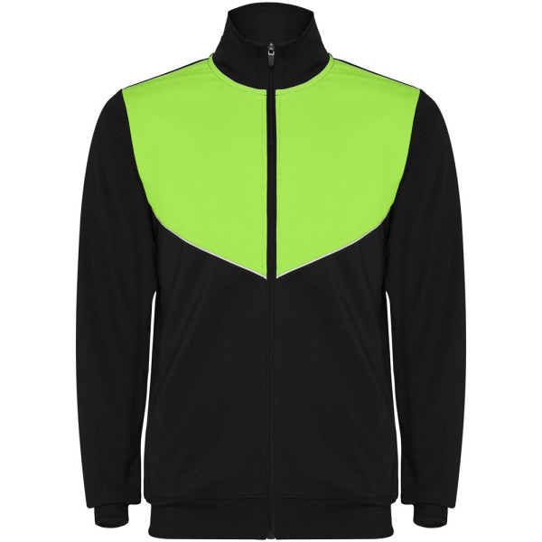 Trainingspak van lichtgewicht en elastische stof. Jack met contrasterende kleur en stiksels op de...meer