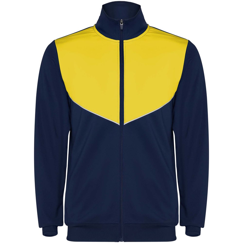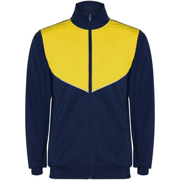 Trainingspak van lichtgewicht en elastische stof. Jack met contrasterende kleur en stiksels op de...meer
