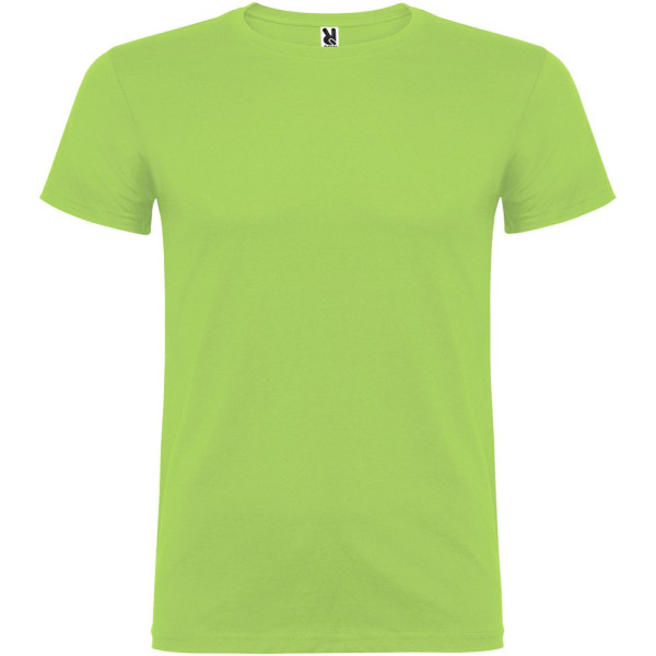T-shirt met korte mouwen en dubbellaagse ronde hals van elastaan, gemaakt van buisvormige stof voor volwassenen. Versterkte bedekte naden in de kraag. Verwijderbaar etiket. Het model is 190 cm en draagt maat L.