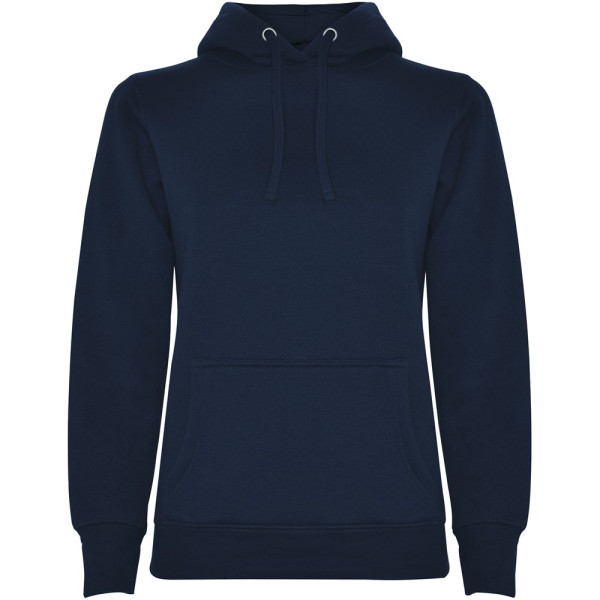 Getailleerd sweatshirt met tweekleurige capuchon van dubbele stof, contrasterend verstelbaar trekkoord, bedekte naden in de kraag en kangoeroezak. 1x1 elastaan rib in manchetten en zoom. Duimsplitdetail. Verwijderbaar etiket. Het model is 179 cm en draagt maat S.