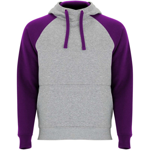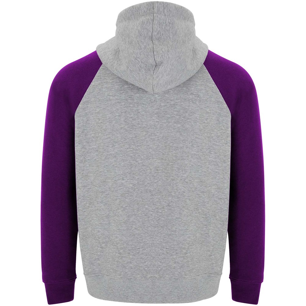 Tweekleurige unisex hoodie. Capuchon met gekruiste hals en metalen oogjes. Contrasterende binnenkant van de capuchon, trekkoord en raglanmouwen. Kangoeroezak. Manchetten en zoom van 1x1 ribgebreid elastaan. Verwijderbaar label.