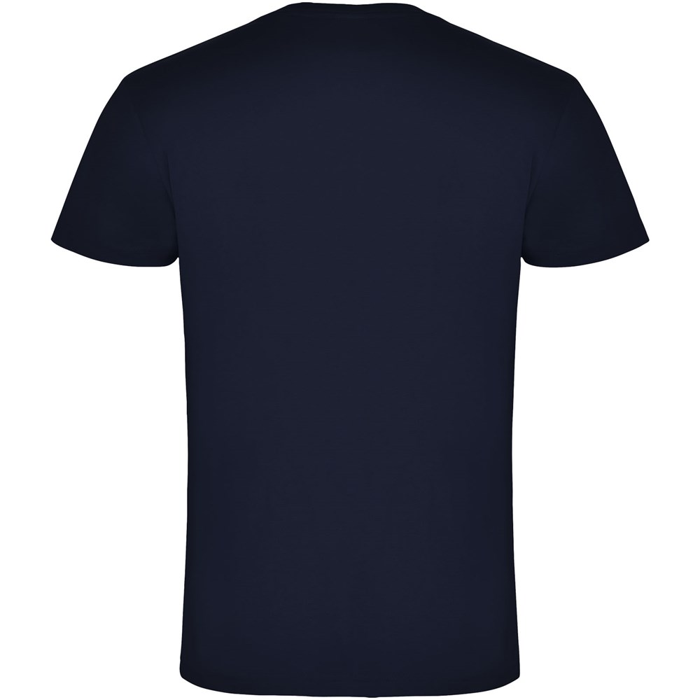 Buisvormig T-shirt met korte mouwen en tweelaags V-hals. Versterkte bedekte naden in kraag en schouders. Verwijderbaar etiket. Het model is 190 cm en draagt maat L.