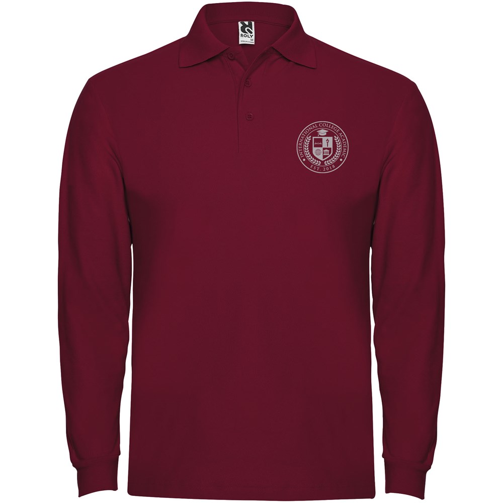 Poloshirt met lange mouwen, geribde kraag en manchetten, sluiting met drie knopen en 1x1 geribde manchetten van elastaan. Versterkte bedekte naden in de kraag. Optionele zak. Verwijderbaar etiket. Het model is 190 cm en draagt maat L.