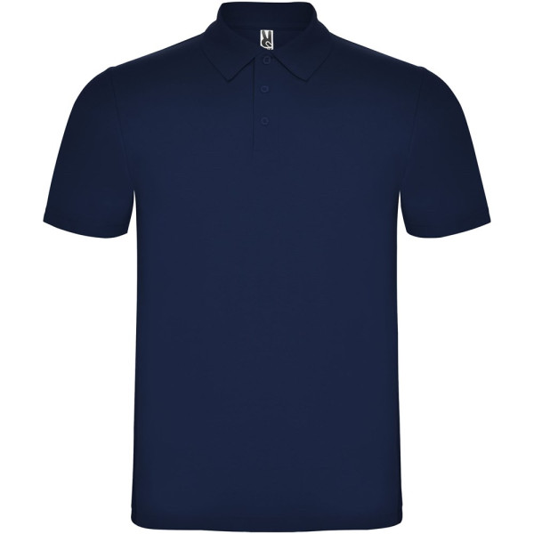 Poloshirt met korte mouwen, sluiting met drie knopen en 1x1 geribde kraag. Versterkte bedekte naden in de kraag. Verwijderbaar etiket. Het model is 190 cm en draagt maat L.