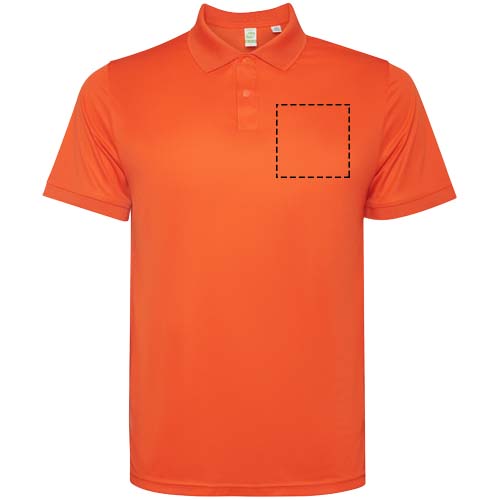 Herenpolo met korte mouwen. Versterkte bedekte naden in de binnenkraag. 1x1 geribde manchetten en kraag. Zijnaden. Knoopsluiting met 3 knopen en zijsplitten.
