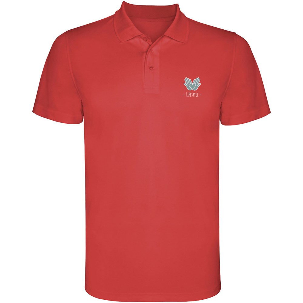 Technisch poloshirt met korte mouwen. Gebreide kraag met sluiting met drie knopen. Ademende, gemakkelijk te wassen en drogende stof. Verwijderbaar etiket. Technische stof. Ademende stof.