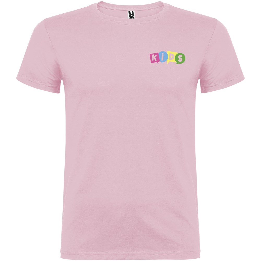 T-shirt met korte mouwen en dubbellaagse ronde hals van elastaan, gemaakt van met zijnaden. Versterkte bedekte naden in de kraag. Verwijderbaar etiket. Het model is 120 cm en draagt maat 5/6.