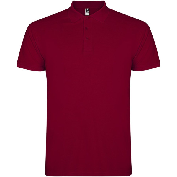 Poloshirt met korte mouwen voor heren. Versterkte bedekte naden in de binnenkant van de kraag. 1x1 geribde manchetten en kraag. Zijnaden. Knoopsluiting met drie knopen en zijsplitten. Optionele zak. Verwijderbaar etiket. Het model is 185 cm en draagt maat L.