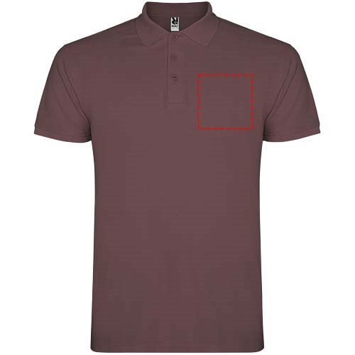 Poloshirt met korte mouwen voor heren. Versterkte bedekte naden in de binnenkant van de kraag. 1x1 geribde manchetten en kraag. Zijnaden. Knoopsluiting met drie knopen en zijsplitten. Optionele zak. Verwijderbaar etiket. Het model is 185 cm en draagt maat L.