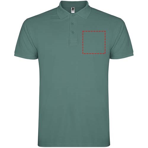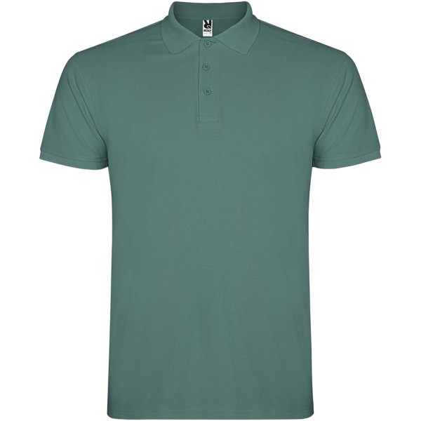 Poloshirt met korte mouwen voor heren. Versterkte bedekte naden in de binnenkant van de kraag. 1x1 geribde manchetten en kraag. Zijnaden. Knoopsluiting met drie knopen en zijsplitten. Optionele zak. Verwijderbaar etiket. Het model is 185 cm en draagt maat L.
