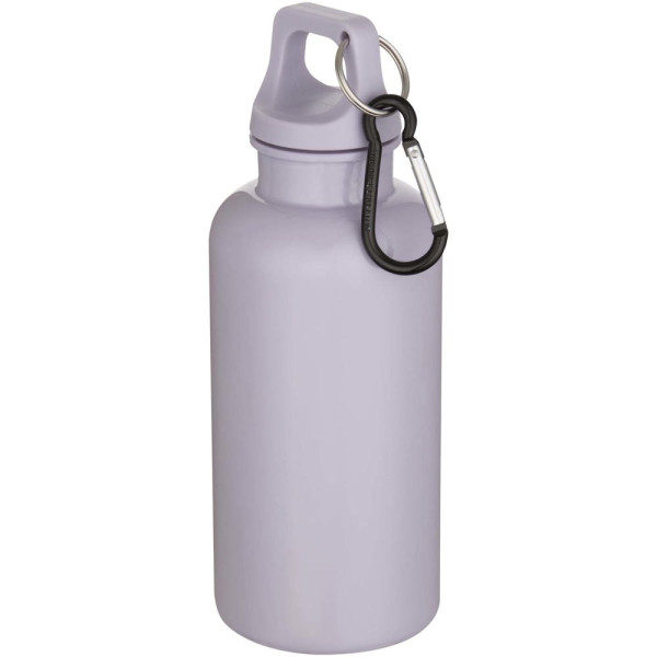 Altijd gehydrateerd blijven is mogelijk met deze duurzame maar toch lichte waterfles van 400 ml, gemaakt van RCS-gecertificeerd gerecycled PET. Het is de perfecte metgezel tijdens het sporten, op dagtrips of op kantoor. De enkelwandige Oregon-fles heeft een draaideksel en biedt voldoende ruimte om elk soort logo toe te voegen. Bevestig de meegeleverde karabijnhaak (niet geschikt om mee te klimmen) stevig aan een tas om verlies te voorkomen. Geproduceerd volgens het door EFSA goedgekeurde PET-recyclingproces.