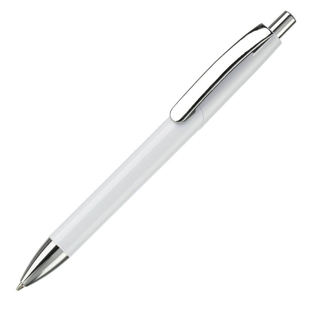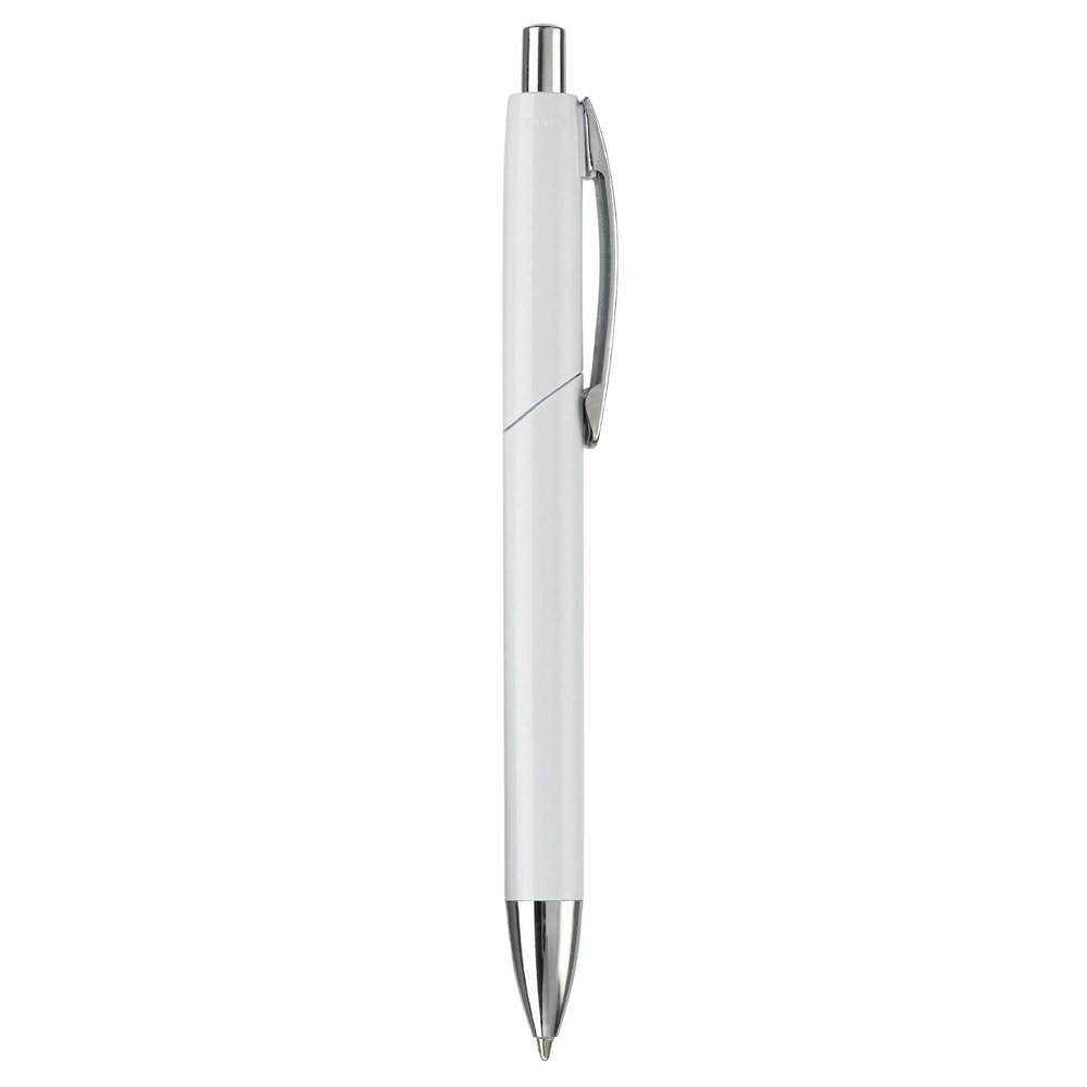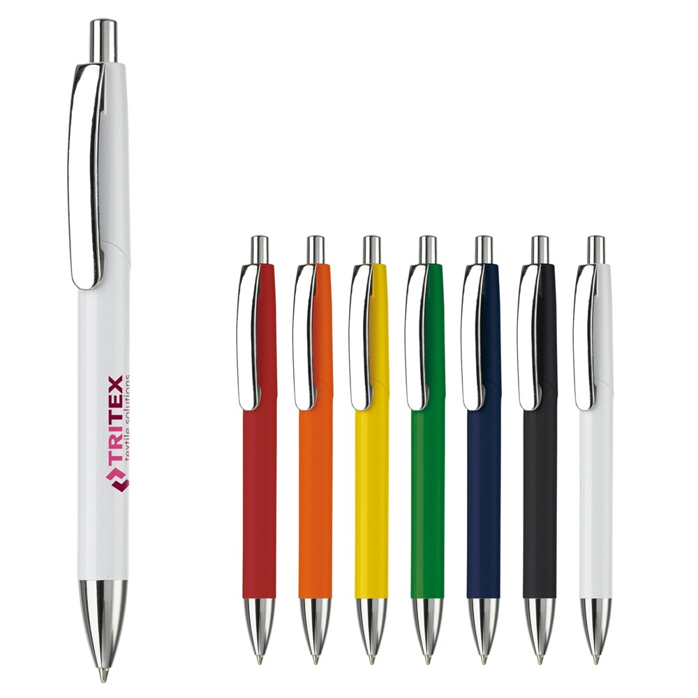 Kunststof hardcolour balpen met blauwschrijvende Jumbo vulling, metalen clip en gemetalliseerd onderstuk en drukker.